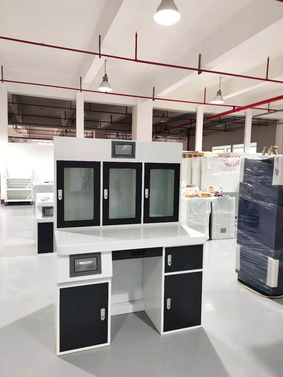 2、用材要求:整理桌采用優質碳鋼,桌體帶有抽屜和文件柜,桌面采用全敞開式工位設計,臺面為優質鋼制臺面,抗菌、防腐蝕;凈化柜采用優質鋼制材質,為密閉結構,凈化柜設計有隔板、方便檔案放置。