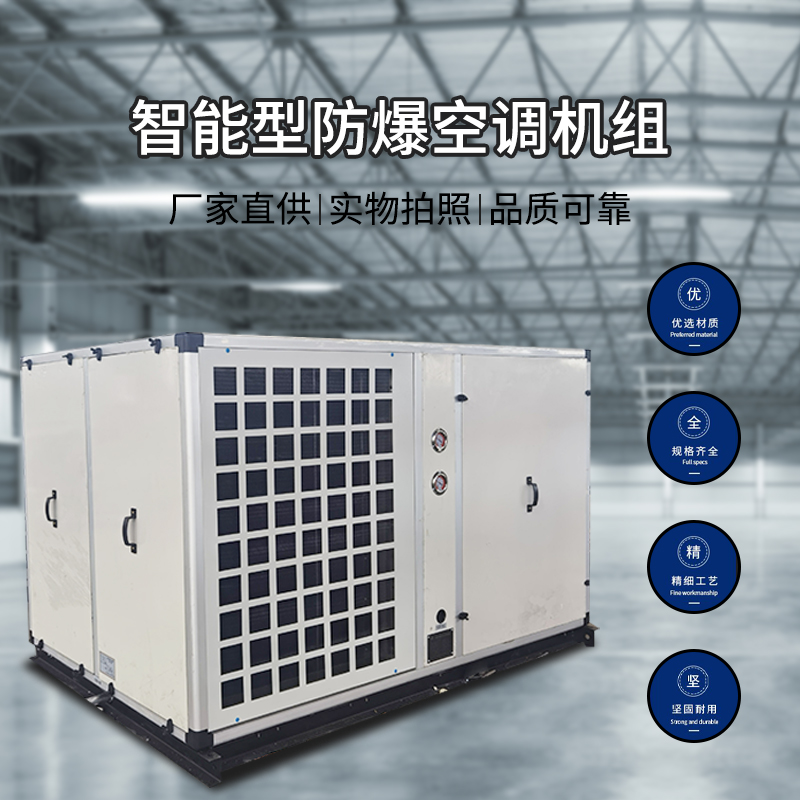 直膨式全新風防爆空調機組具有制冷、制熱、加濕、通風、凈化等五大功能;既滿足溫度要求,亦可達到通風凈化之效果。采用無框架、卡槽式箱體結構,有效保證機組的適用性能,整體結構緊湊牢固,保溫性能好,隔音效果優越、美觀大方。直膨式全新風防爆空調機組采用性能較高的低噪音離心風機,具有風量大,靜壓高、噪音低和運轉平穩等優點,通過嚴格的制冷系統優化計算,確保在不同環境下正常運行。根據客戶需求設定溫度要求自動啟停、精度高可靠性強、操作簡單。全自動溫度控制,16C°-30C°任意調節 。控制溫度1℃ 。優化節能,運行效率較高,配置高低傳感器、防凍保護、過載保護等多重安全保護,運行安全穩定。