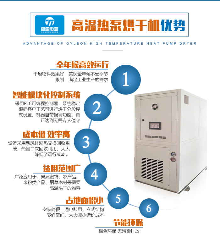 ★  同恩牌熱泵干燥機在相對濕度為10%~90%范圍內,控制環境溫度在常溫~70℃能正常干燥物料。